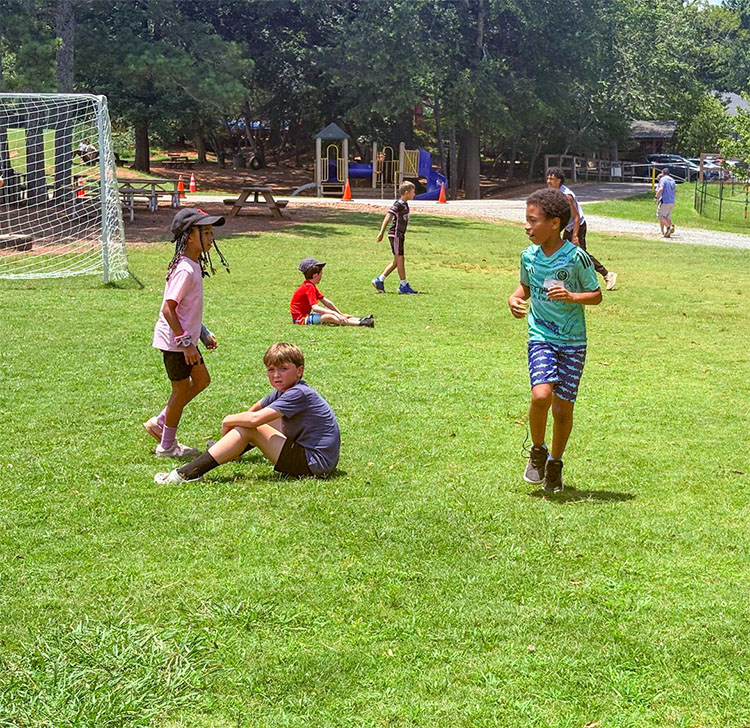 High Meadows campers are incredibly active from the moment they arrive in the morning to the end of the day at carpool. Our property offers many opportunities for physical movement, be it climbing a tree, scaling a climbing wall, or participating in an obstacle course. We have safety guidelines for children climbing trees, playing on the playground equipment, and participating in organized activities, but the potential for injury always exists. While we strive to offer inclusive programming, our campus cannot be functionally navigated in a wheelchair or by individuals with significant mobility challenges. As we are spread over 42 acres, campers and staff should be comfortable and able to negotiate a variety of terrains.